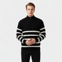 Combining everyday comfort with timeless style, this men’s striped quarter-zip sweater features a ribbed knit texture and horizontal white stripe pattern for a classic yet modern look. The quarter-zip closure and stand collar provide adjustable warmth and versatility, while the long sleeves with fitted cuffs ensure a neat, structured finish. Crafted from a soft, comfortable knit fabric, it’s perfect for layering over shirts or wearing solo for a polished, casual aesthetic.