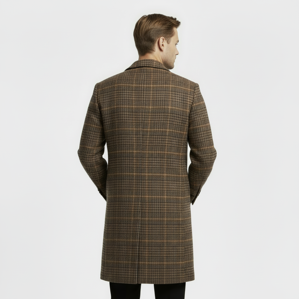 Men’s Wool-Blend Checked Overcoat – Plaid Winter Coat