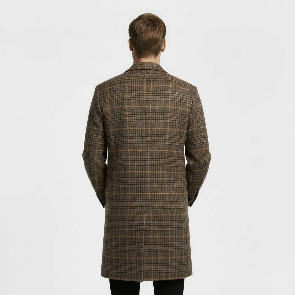 Designed for crisp mornings and the quiet rhythm of winter in the city, this men’s checked overcoat blends modern sophistication with classic cold-season charm. Crafted from a soft wool-blend with a windproof finish, it delivers dependable warmth while maintaining a clean, structured silhouette. The understated plaid pattern adds personality without overwhelming, making it the kind of piece you instinctively reach for when you want effortless refinement. With notched lapels, a streamlined two-button front, and practical welt pockets, it strikes the perfect balance between heritage style and everyday function.
