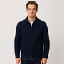 This jacket is cut to a standard fit and includes a button-through front. The surface has a visibly textured finish made from pure cashmere. A single chest patch pocket is positioned on the left side. The hemline is straight, and the collar is structured with a clean edge.