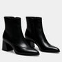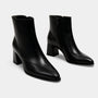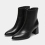Women’s Pointed Toe Faux Leather Ankle Boots – Block Heel, Side Zip
