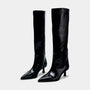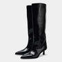 Designed for days when you want your outfit to speak softly but confidently, these women’s tall heeled boots bring a sleek, sculpted presence to cool-season dressing. The polished upper and pointed toe create a refined, elongated silhouette, while the mid-height heel adds just the right amount of lift for everyday sophistication. With a smooth, minimal shaft and a discreet side zipper, they pair effortlessly with dresses, skirts, and tailored trousers—clean, modern, and unmistakably chic.
