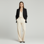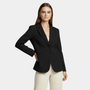 A contemporary take on a wardrobe classic, this women’s blazer is designed with clean lines and a close fit that subtly defines the waist. Crafted from a structured woven fabric, it balances sharp tailoring with everyday versatility. The single one-button closure and refined lapels create a polished neckline, while front welt pockets add discreet functionality. Fully lined for smooth layering, it pairs effortlessly with shirts, knits, or matching trousers for a sleek, modern look.
