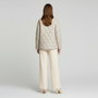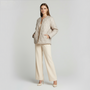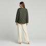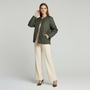 This long-sleeve jacket combines relaxed comfort with contemporary quilting, featuring an elongated oval pattern across the body and sleeves for a distinctive textured finish. The straight, collarless neckline keeps the look minimal and refined, while the full-length front zipper adds everyday practicality. Two rectangular patch pockets provide functional storage without disrupting the clean lines. Finished with straight cuffs, a straight hemline, and visible seam detailing, this jacket offers an effortless, modern layer for transitional weather or indoor-outdoor wear.
