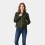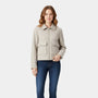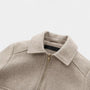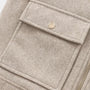 Refined and versatile, this women’s short jacket is crafted from a soft wool blend with a lightly brushed texture for warmth and comfort. The straight, structured cut and shirt-style collar create a polished everyday look, while the full-length front zipper adds a modern, minimal edge. Two large flap pockets with press-stud closures enhance functionality and shape, and the neutral tones makes it an easy match with any outfit. Perfect for both office days and casual wear, it’s a timeless piece that transitions seamlessly through the seasons.